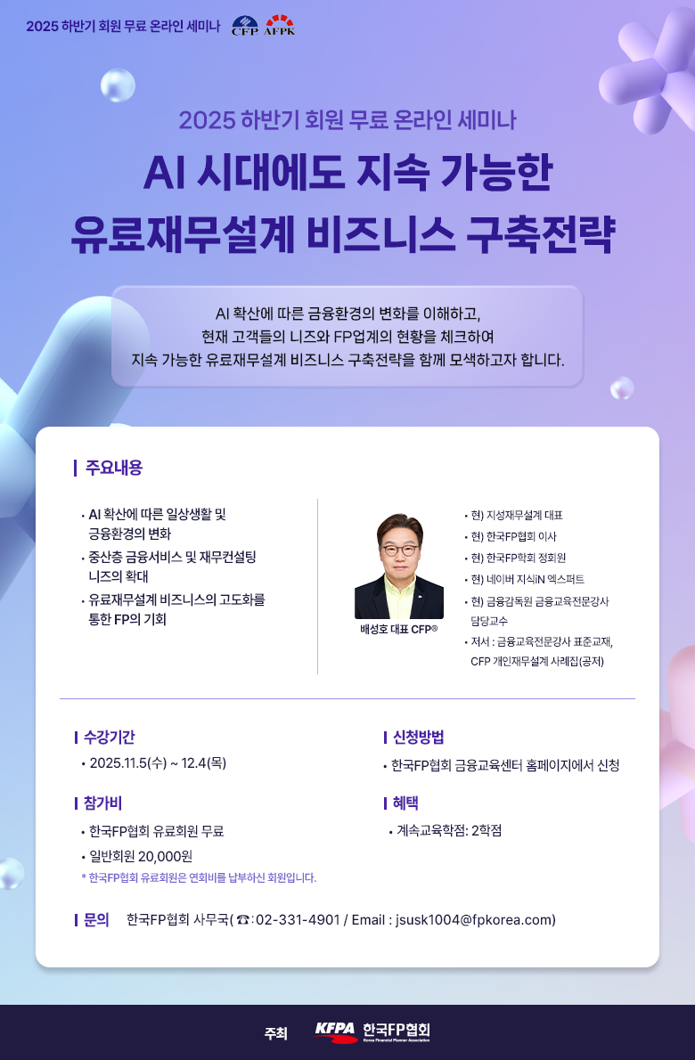 [ 2025년 하반기 FP협회 유료회원 온라인 세미나 과정 ]